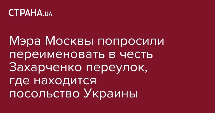 Мэра Москвы попросили переименовать в честь Захарченко переулок, где находится посольство Украины