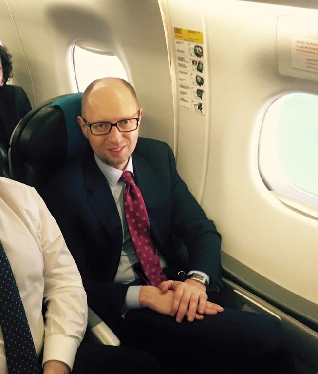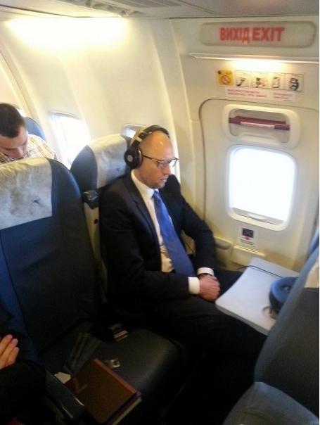 Яценюк повторил перелет в экономе в марте 2015 года в компании Михаила Саакашвили. Политики летели через Варшаву в Брюссель. Фотографии выложил пользователь Zenia Klimakin.