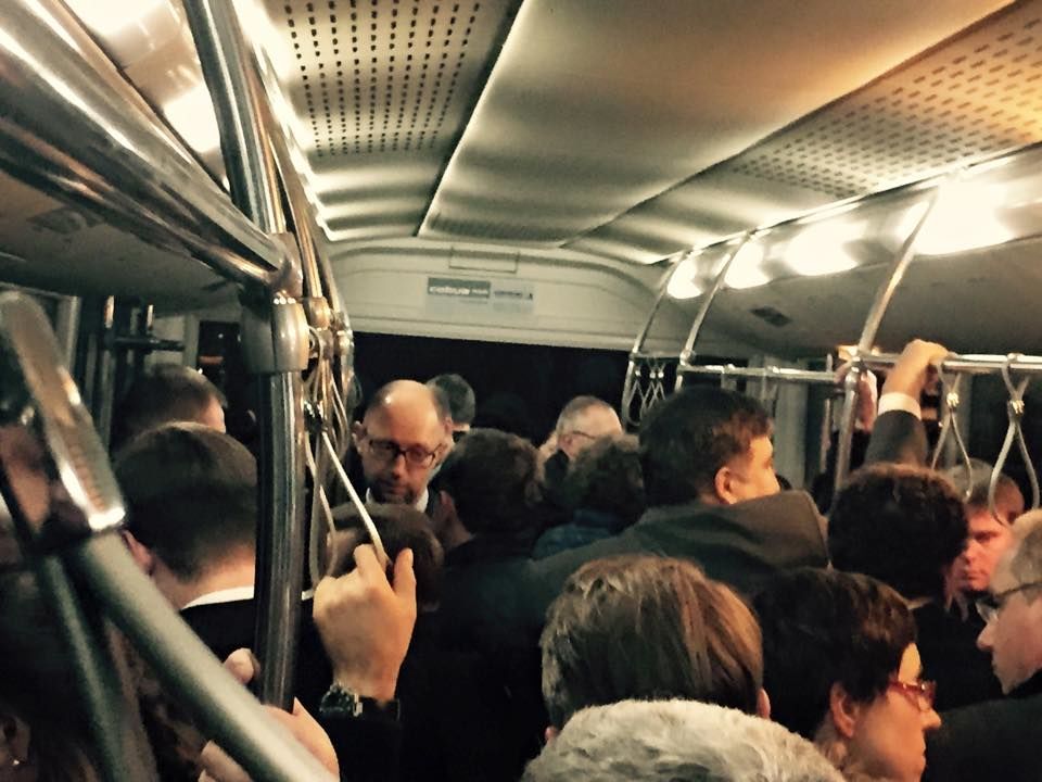 В киевской подземке сфотографировался и нардеп Сергей Лещенко. Он сообщил, что уже год ездит на заседания в Раду на общественном транспорте и посоветовал всем депутатам последовать его примеру.