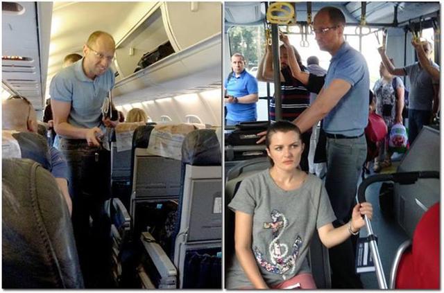 В эконом-классе в свое время не раз летал экс-премьер-министр Арсений Яценюк. Такие фото периодически становились достоянием общественности. В 2013 году Мустафа Найем выложил в сеть фото лидера "Батькивщины" в эконом-классе рейса Киев-Ивано-Франковск. На одном снимке Яценюк, улыбаясь, пробирается по узкому ряду между креслами. На другом - едет в общественном транспорте на фоне других пассажиров.