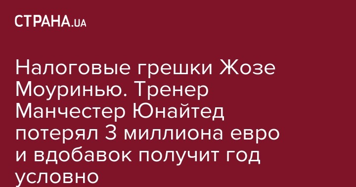 Налоговые грешки Жозе Моуринью. Тренер Манчестер Юнайтед потерял 3 миллиона евро и вдобавок получит год условно