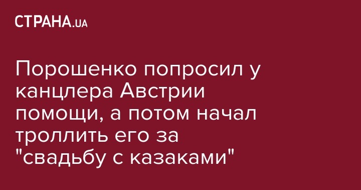 Порошенко попросил у канцлера Австрии помощи, а потом начал троллить его за "свадьбу с казаками"
