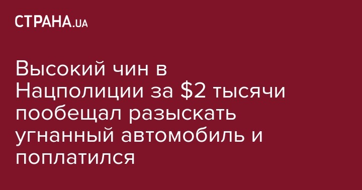 Сообщается, что чиновник требовал деньги от владельца похищенного транспортного средства через посредника. Полицейский обещал предоставить ответ на официальный запрос о наличии авто в розыске и установлении его места нахождения.