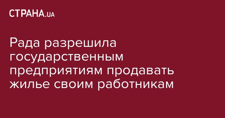 Сегодня, 4 сентября, народные депутаты Верховной Рады приняли закон, позволяющий госпредприятиям, учреждениям и организациям, а также хозяйственным обществам продавать жилье своим работникам, если в уставном капитале таких организаций находится 100% акций государства. Об этом сообщает "Интерфакс-Украина".