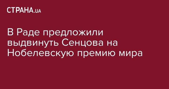 Украинские нардепы с подачи Польши зарегистрирован проект постановления парламента о выдвижению кандидатуры украинского кинорежиссера Олега Сенцова, который сидит в колонии в России, на соискание Нобелевской премии мира. Об этом пишет "Интерфакс-Украина".