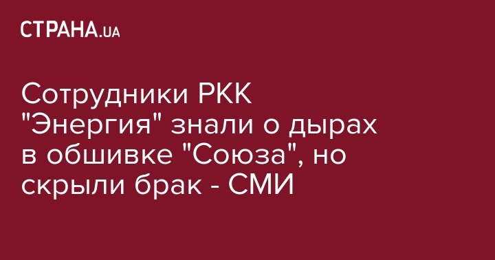 По словам одного из источников, сотрудники ракетно-космической корпорации (РКК) "Энергия" знали о повреждении и на финальной стадии сборки заделали отверстие при помощи специального клея.