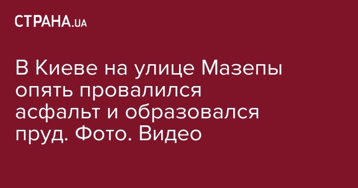 В среду, 5 сентября, в Киеве на улице Ивана Мазепы просел асфальт, его затопило водой и образовался настоящий пруд. Об этом сообщает "Информатор".