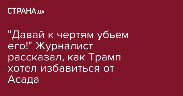 Американский президент после химической атаки, в которой обвиняется Асад, позвонил Мэттису с предложением ликвидировать сирийского лидера. "Давай к чертям убьем его! Пойдем. Давай убьем, их чертовски много", - сказал Трамп.