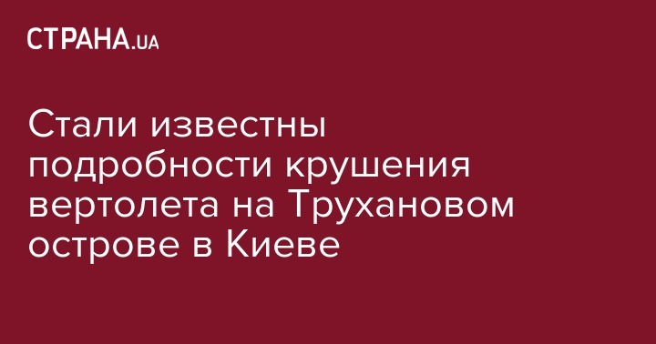 Пилот и пассажир вертолета, который сегодня рухнул на Трухановом острове, остались живы из-за того, что машина урухнула на деревья. Но одному из них деталь вертолета пробила ногу. Об этом УНН сообщила пресс-секретарь ГУ ГСЧС в столице Светлана Водолага.