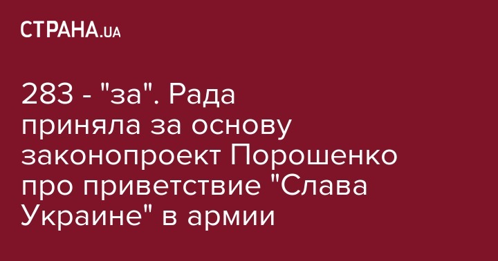 283 - "за". Рада приняла за основу законопроект Порошенко про приветствие "Слава Украине" в армии