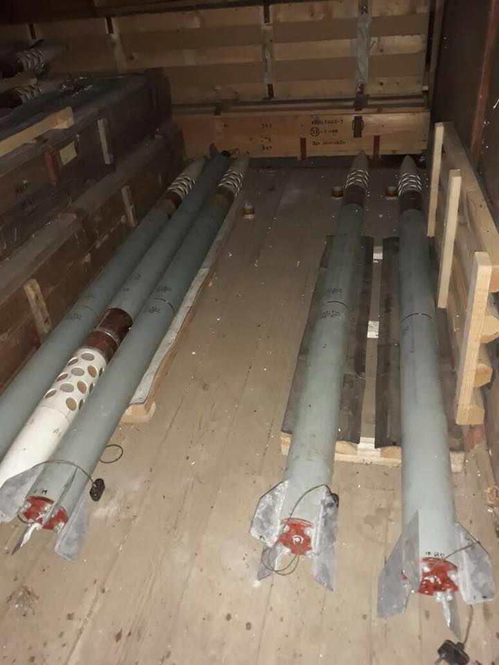 "Нашли вот такой небольшой склад. А именно: взрывные устройства, реактивные твердотопливные ракеты типа "земля-воздух", противоградные ракетные комплексы типа "Алазань-2м", "Кристалл 1,2,3", выявлено 18 ракет", - написал он.