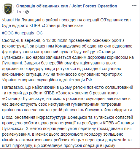 "На луганском направлении вблизи населенного пункта Крымское ночью враг обстрелял позиции Объединенных сил из артиллерии калибра 152 мм, а уже вечером открывал огонь по опорному пункту в районе Светлодарской дуги с миномета калибра 120 мм", - сказано  в сообщении.