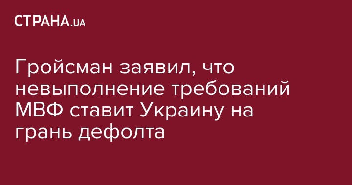 Премьер-министр Украины Владимир Гройсман сообщил, что невыполнение условий Международного валютного фонда поставит Украину на грань дефолта. Об этом он сказал в эфире телеканала "Интер".