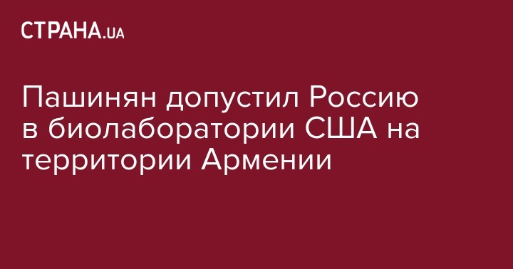 Премьер-министр Армении Никол Пашинян дал доступ российским специалистам к американским лабораториям, которые занимаются исследованием биоматериалов и расположены на армянской территории.