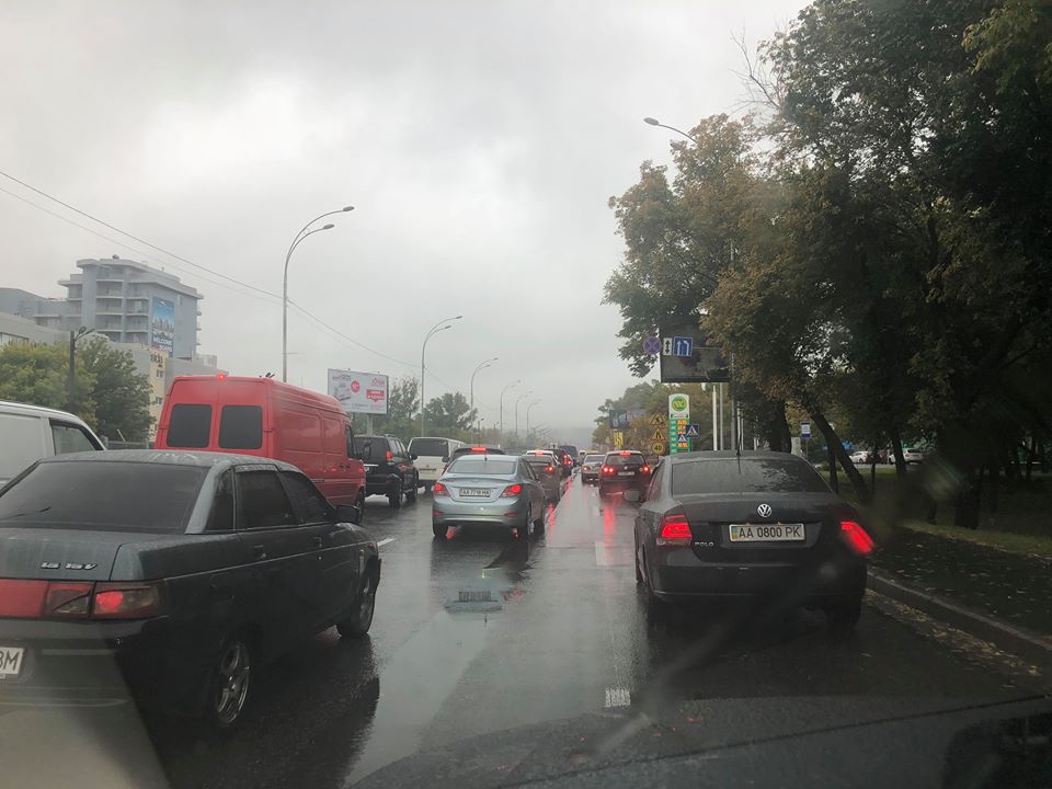 Парализовано движение на улицах Гетьмана, Довженко, а также на проспекте Академика Палладина и Кольцевой дороге. Кроме того, наблюдается пробка на проспекте Победы в районе станции метро Житомирская.