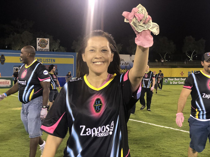 В перерыве матча один из менеджеров Las Vegas Lights поднялся в небо и разбросал с вертолета 5 000 долларов. Так "Молнии" привлекают людей на трибуны.