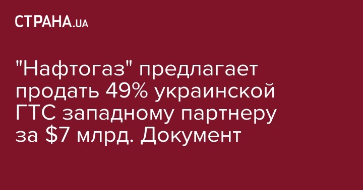"Нафтогаз" предлагает продать 49% украинской ГТС западному партнеру за $7 млрд. Документ