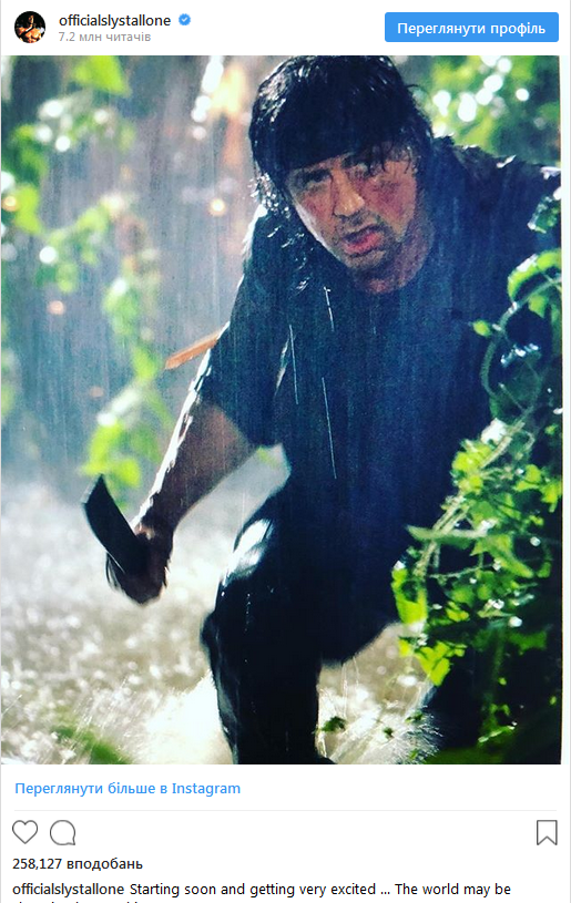 Сильвестр Сталлоне объявил, что планирует приступить к съемкам очередного фильма про ветерана войны во Вьетнаме. Об этом сам Слай объявил в своем Instagram, за которым следят 7,2 миллиона подписчиков.