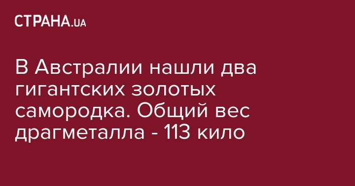 В Австралии нашли два гигантских золотых самородка. Общий вес драгметалла - 113 кило