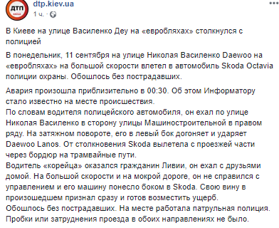 В Киеве иностранец за рулем авто на евробляхах протаранил полицейский автомобиль