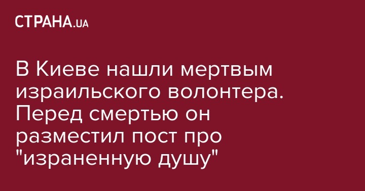 "Найден погибшим в квартире в Киеве по месту проживания Бари Бонен - гражданин Израиля, который длительное время работал в Украине, был награжден за волонтерскую деятельность медалью одной из общественных организаций", - сообщает Бутусов.