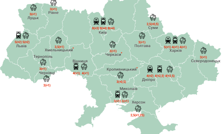 В Славянске и Сумах стоимость проезда в троллейбусах повысилась на 50 копеек - до 3 грн и 2,5 грн соответственно. Во Львове трамвай и троллейбус подорожал на 2 грн.