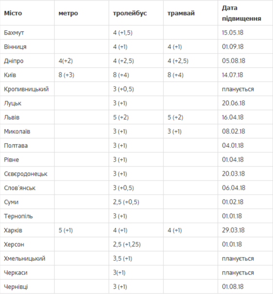 В 2018 году подорожание проезда в общественном транспорте Украины составило от 30 до 100%