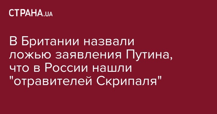Представитель британского премьер-министра Терезы Мэй прокомментировал сегодняшнее заявление президента России Владимира Путина о том, что в России нашли людей, которых Британия обвиняет в отравлении Скрипалей. Об этом сообщает Reuters.