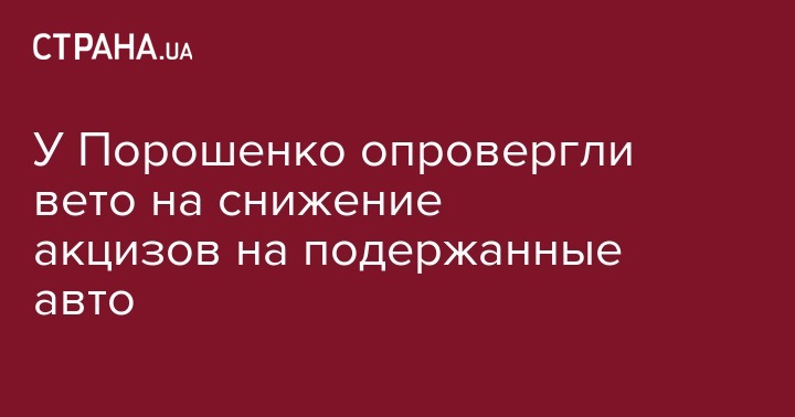 Как сообщала "Страна", Порошенко ветировал закон о снижении акциза на подержанные иномарки. Об этом в Facebook написал народный депутат Владимир Парасюк.