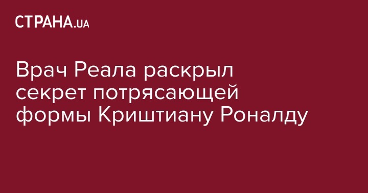 Врач мадридского Реала Хуан Карлос раскрыл секрет потрясающей физической формы Криштиану Роналду (футболисту уже 33 года - Прим.Ред.), который покинул ряды "галактикос" и теперь играет за итальянский Ювентус, правда пока голов не забил.
