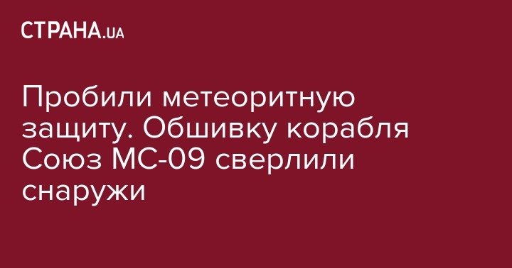 Пробили метеоритную защиту. Обшивку корабля Союз МС-09 сверлили снаружи