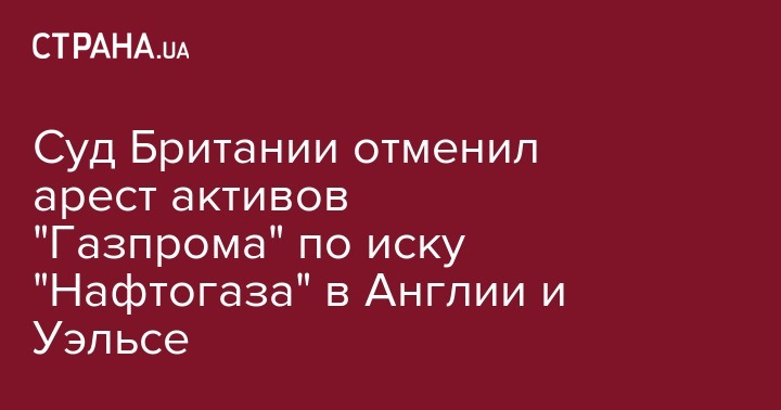 Английский суд отменил арест активов российской компании "Газпром" на территории Англии и Уэльса. Он был наложен в рамках исполнения решения Арбитражного института Торговой палаты Стокгольма (Швеция) от 28 февраля 2018 года по спору с НАК "Нафтогаз Украины".