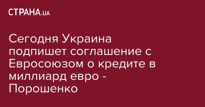 Сегодня Украина подпишет соглашение с Евросоюзом о кредите в миллиард евро - Порошенко