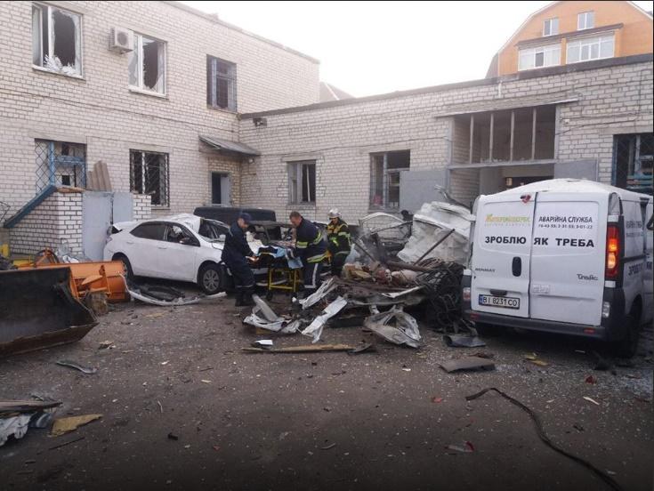 Взрыв произошел по улице 1905 года во дворе дома №30, в котором расположена управляющая компания Житлорембудсервис. По предварительной информации, взорвался баллон для сварки, который находился в автомобиле Renault Trafic.