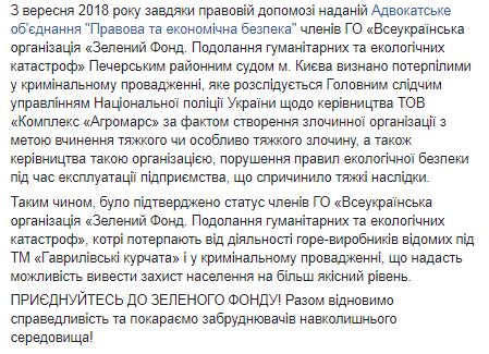 Скриншот: Facebook Зелений Фонд