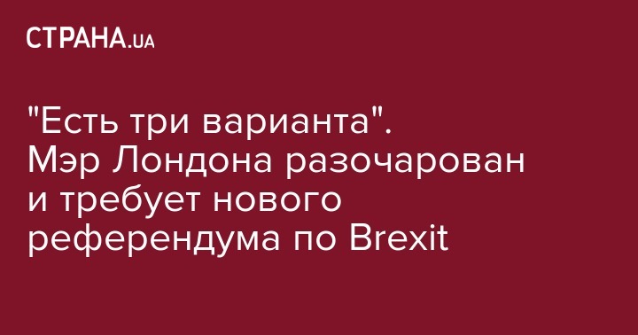 "Речь идет о публичном голосовании. Есть три варианта: выход из ЕС с соглашением, которое предлагает правительство, выход без соглашения о Brexit, возможность остаться в ЕС", - сказал мэр Лондона.