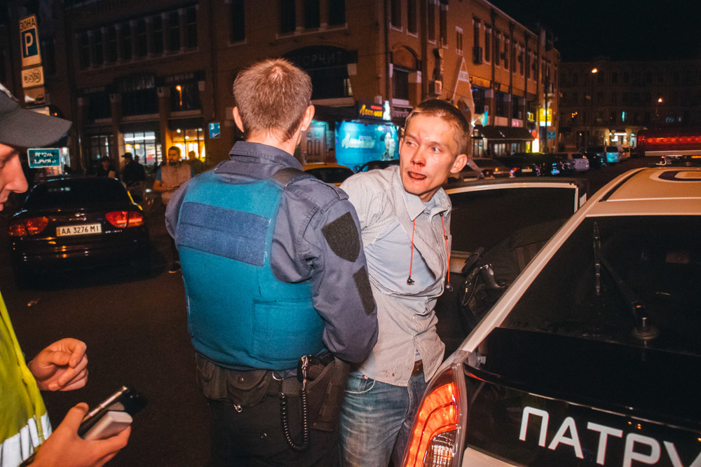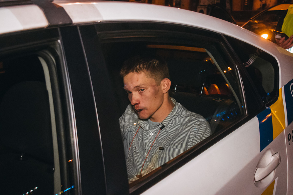 После возвращения молодые люди пытались уехать на авто. Однако прохожие задержали их до приезда полиции. Водитель, который имел признаки алкогольного опьянения, начал спорить с копами, и на него пришлось надеть наручники.