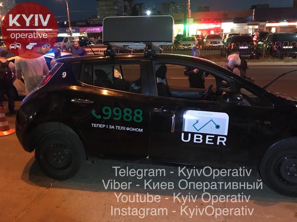 В Киеве, вечером 16 сентября, возле станции метро "Минская" водитель такси Uber на высокой скорости въехал в остановку с людьми. Об этом сообщает "Киев Оперативный".