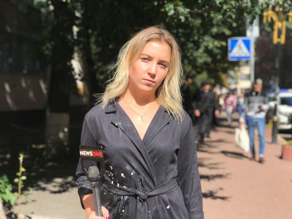 "У нас было прямое включение в эфир. Мы должны были рассказать обо всем, что сейчас происходит под стенами Генпрокуратуры. Но праворадикальные националисты начали свои провокационные действия. В меня полетел лед, какие-то снежки со стороны радикалов. Потом полетели яйца. Вы видете ,что я сейчас вся в яйцах. Сначала одна активистка пыталась забрать у меня микрофон и не дать возможности рассказать в прямом эфире о том, что происходит. Позже она ударила меня в ухо. В эту часть. Сейчас я плохо слышу. Все время радикалы меня обзывали. Полицейские сказали держаться подальше от прокуратуры", - отметила Дарина.