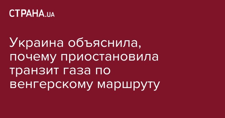 Украина объяснила, почему приостановила транзит газа по венгерскому маршруту