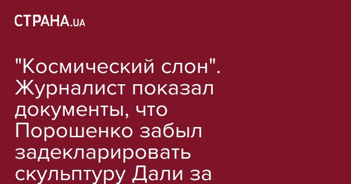 "Согласно декларации, у президента огромная коллекция картин (84 шт.) и 7 скульптур, в том числе и скульптура Винченцо Джемито – "Мальчик рыбак". В далеком 2012 году, после того как тогда еще "не беглый» Президент Янукович назначил Порошенко министром экономического развития и торговли, Петр Алексеевич сделал себе подарок. Он прибрёл статуэтку испанского живописца, графика, скульптора и режиссёра Сальвадора Дали, которая носит имя Éléphant Dalinien ou éléphant spatial, 1980 – "Космический слон". Всего в мире 8 статуэток "космических слонов", которые были созданы скульптором в 1980 году. Совсем недавно один из "слонов" (под №4) был выставлен в Канаде на временной выставке. Скульптуру оценили в 3,6 млн. долларов – 100 млн гривен", - написал Дубинский.