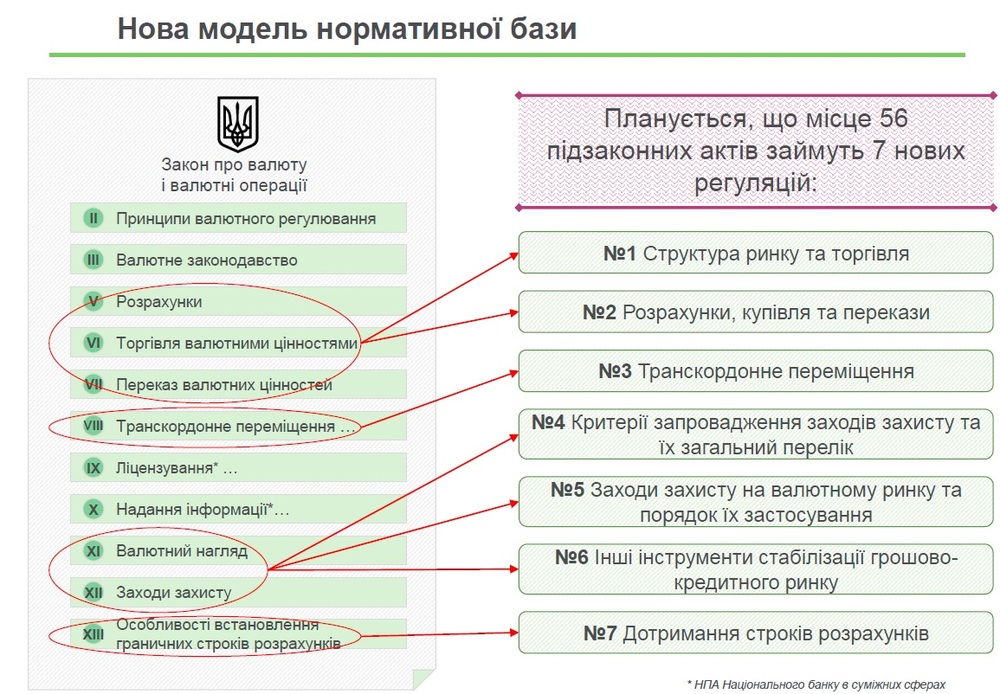 Действующие 56 нормативно-правовых актов в сфере валютного регулирования будут заменены 7 документами, определяющими структуру и правила валютного рынка, а также инструменты стабилизации денежно-кредитного рынка.