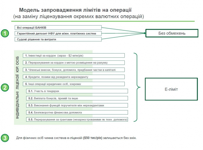 В-третьих, индивидуальные валютные лицензии будут отменены. Вместо них появится система электронных лимитов.