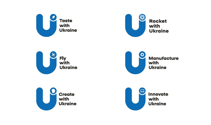 При этом первая часть слогана может трансформироваться в зависимости от отрасли, например: пищевая промышленность - "Taste with Ukraine", машиностроение - "Manufacture with Ukraine", креативная сфера - "Create with Ukraine".