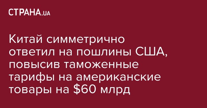 Китай симметрично ответил на пошлины США, повысив таможенные тарифы на американские товары на $60 млрд