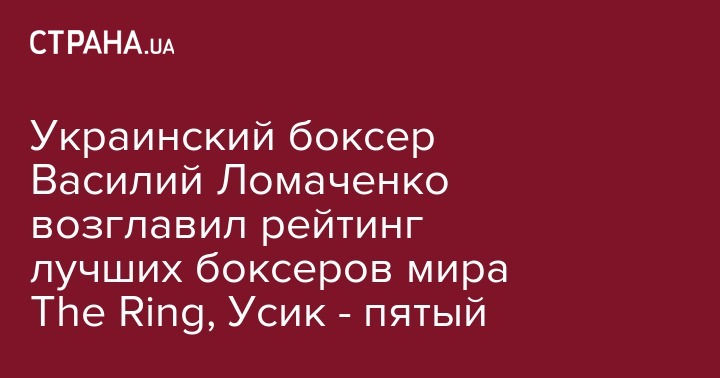 Украинский боксер Василий Ломаченко возглавил рейтинг лучших боксеров мира The Ring, Усик - пятый