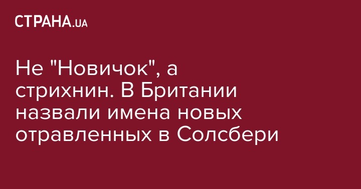 Источники в правоохранительных органах сообщают, что пара могла быть отравлена стрихнином. Ранее пресс-служба полиция графства Уилтшир информировала, инцидент не рассматривается, как "подозрительный", и что пострадавшие при отравлении не подвергались воздействию нервно-паралитического вещества "Новичок".