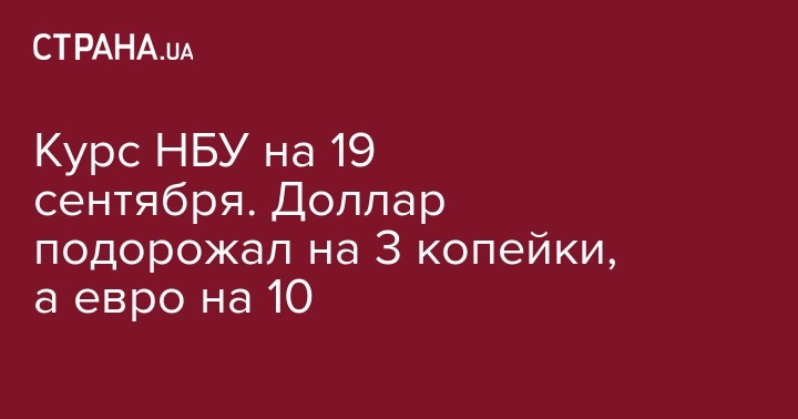 Национальный банк Украины (НБУ) установил официальный курс основных валют на 19 сентября 2018 года. В частности, курс доллара по отношению к гривне в сравнении с показателями предыдущего банковского дня, 18 сентября, повысился на  3 копейки. Об этом сообщается на сайте регулятора.