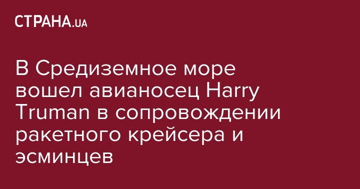 В акваторию Средиземного моря вошла авианосная ударная группа ВМС США во главе с атомным авианосцем Harry Truman. Об этом сообщает пресс-служба американских военно-морских сил.