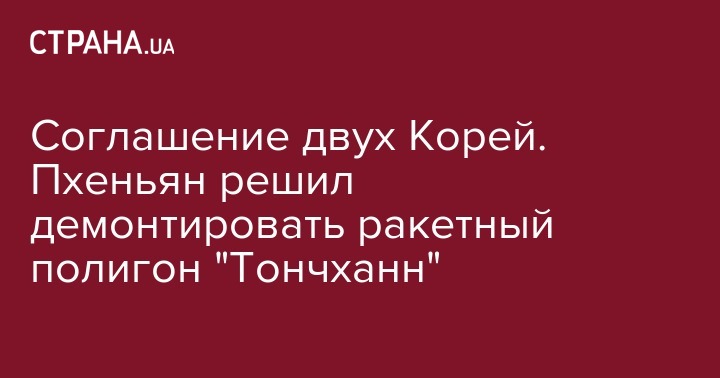 Соглашение двух Корей. Пхеньян решил демонтировать ракетный полигон "Тончханн"